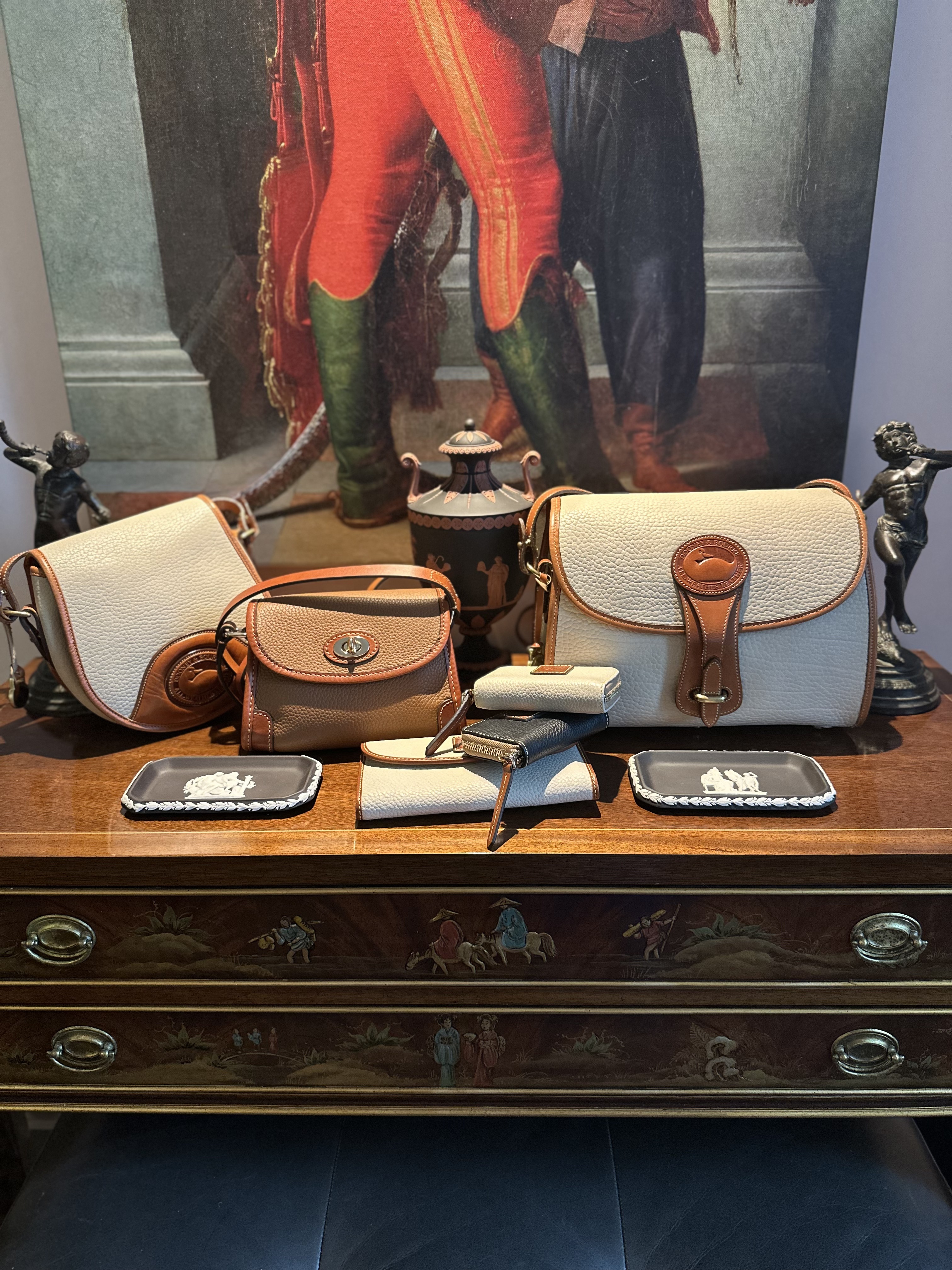 Dooney & Bourke Pebble Grain actually started out in 1983 as All-Weather-Leather or AWL, and thus the duck was born. AWL is aptly named due to the tanning process which makes it nearly impervious to rain and snow. One of my all-time favorite bags in my collection is my vintage AWL Large Essex in the color Bone. The enduring quality of this bag is absolutely mind-blowing, and the quality is superb. Some people collect vintage Coach, I collect vintage AWL Dooney & Bourke with it’s classic American style which makes it look right at home no matter what region you’re in.